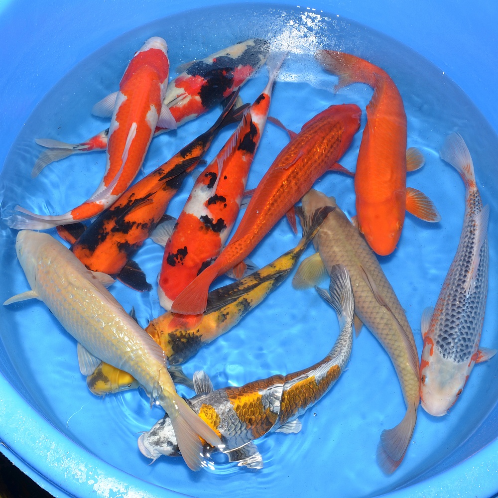 Tosai Mix (D Sanke, Kujaku, D Showa, GR Kohaku, Showa, Kohaku, GR Sanke, Sanke, Asagi, Kin Kikokuryu)